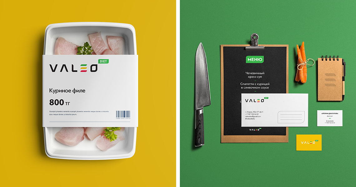 Valeo — это сервис здорового питания с доставкой на дом. Индивидуально составленная диета Valeo помогает клиентам похудеть, улучшить здоровье или набрать мышечную массу. В студии разработали минималистичный логотип с намеком на здоровый образ жизни.