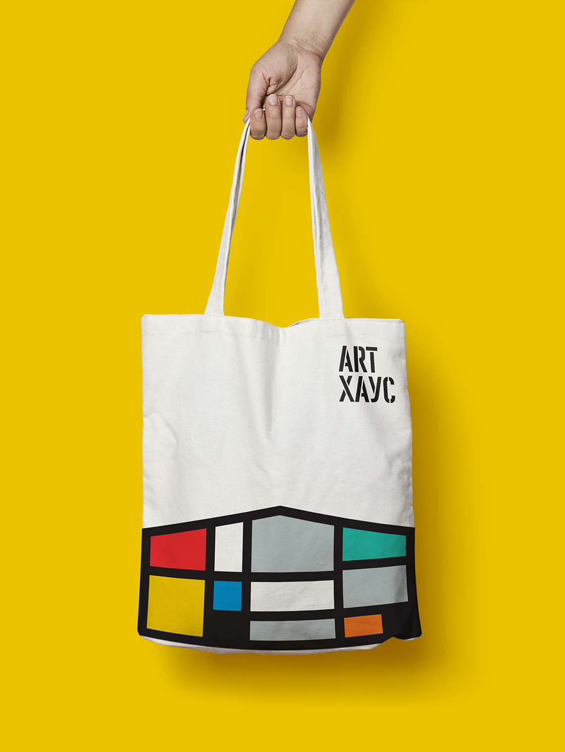 Знаковая часть логотипа выполнена в виде дома, в образ которого вписана известная картина Пита Мондриана. Это решение объясняет, что ARTХАУС — это место, в котором собираются креативные люди. Внутреняя часть фирменного знака имеет несколько вариантов развития, что позволяет использовать его в различных ситуациях и направлениях пространства.