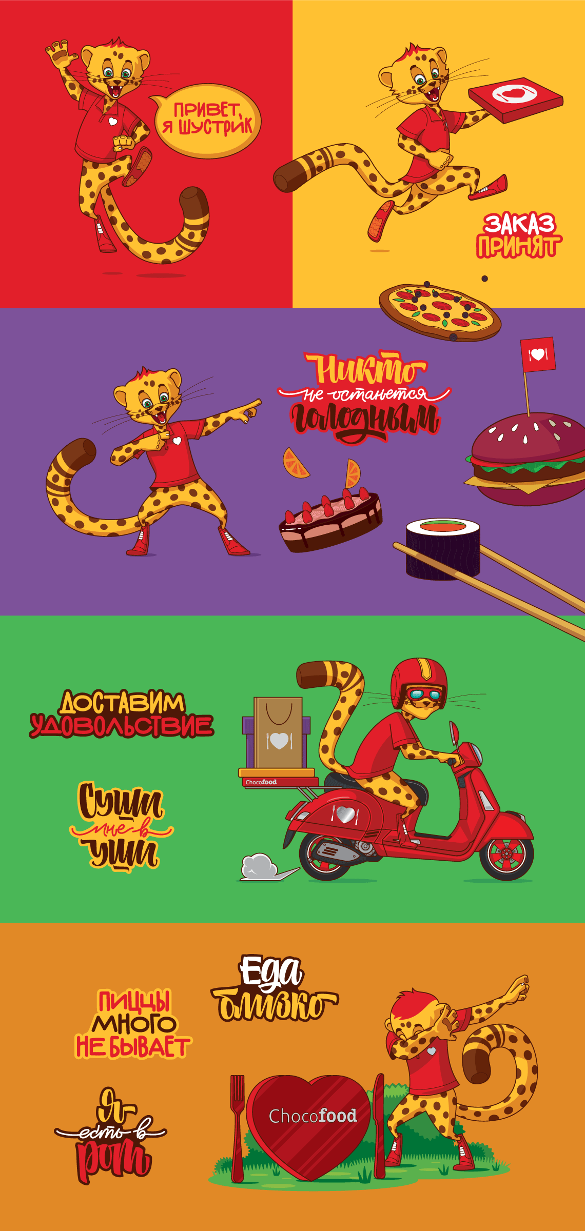 Chocofood — сервис №1 в Казахстане по заказу еды онлайн. Чтобы повысить узнаваемость и лояльность среди клиентов, компания решила обзавестись фирменным персонажем, которого разработала наша студия.