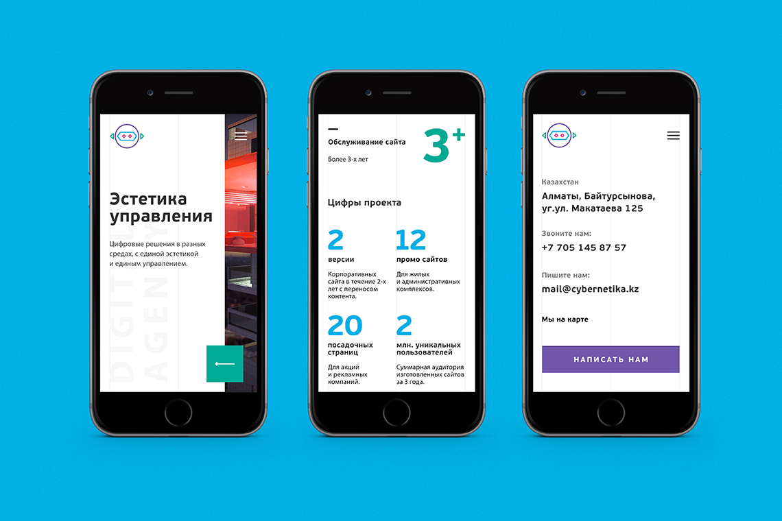 Cybernetika — это диджитал-агентство в Алматы. Ребята занимаются разработкой сайтов и мобильных приложений. В студии разрботали логотип на основе фирменного персонажа.