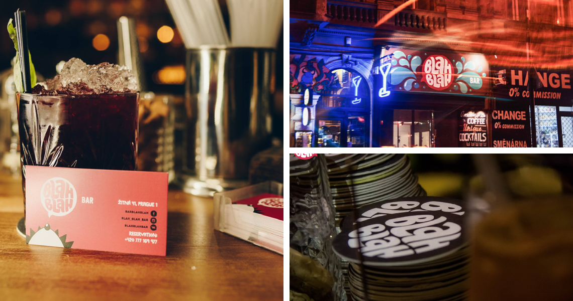 Blah Blah — это уютный бар в городе Прага. В студии разработали фирменный знак, который поддерживает душевную атмосферу заведения.