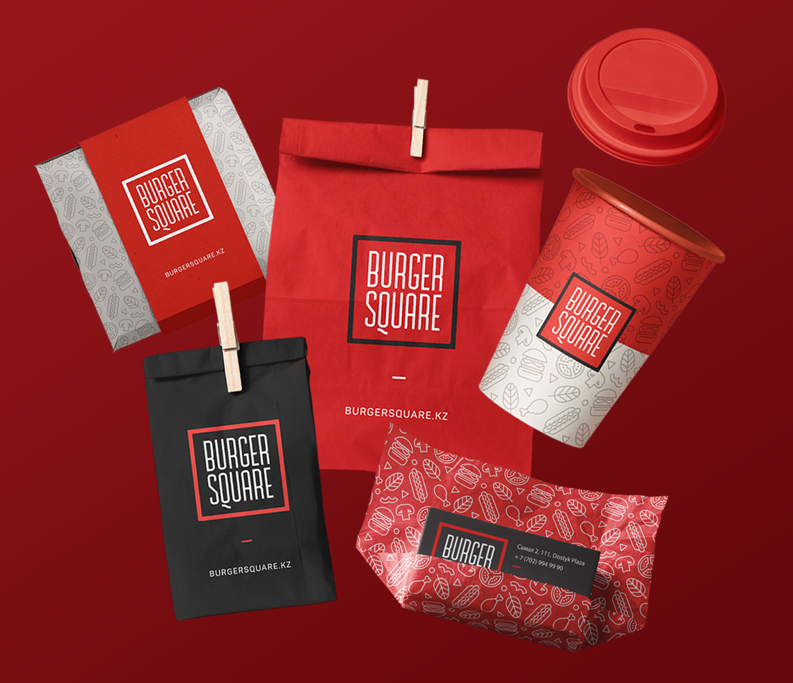 Burger Square — это ресторан на фудкорте Dostyk Plaza, который предлагает своим посетителям сочные бургеры и хот-доги. В студии разработали минималистичный логотип со стилизованным шрифтовым решением.